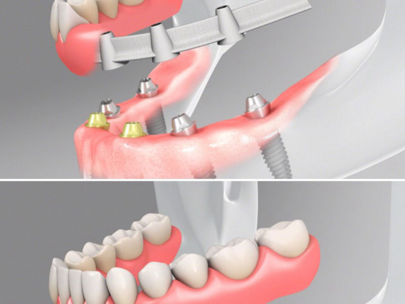 Consiste na reabilitação total de pacientes que perderam todos os seus dentes ou dos que restaram e estão condenados. Pacientes com pouca estrutura óssea também são candidatos a esse tipo de procedimento. Primeiramente, são instalados quatro, cinco ou seis implantes que servem como sustentação para uma prótese total fixa, não havendo a necessidade de instalar um implante para cada dente perdido. Sobre esses implantes é feita uma barra metálica e sobre esta, uma prótese com os dentes e gengiva é parafusada.