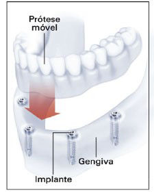São as próteses mais econômicas dentro da implantodontia. Comportam-se como dentaduras, porém com grande poder de mastigação e segurança, mesmo sendo uma prótese móvel. Elas fazem uma retenção sobre os implantes, através de um dispositivo de retenção semelhante a um colchete que a mantém estável, garantindo a segurança do paciente ao falar e mastigar, sem pressionar muito a gengiva.
